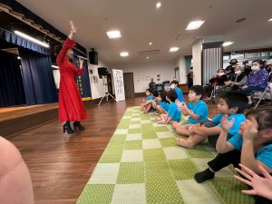 そがみまこ様の素敵な歌声でした(^^♪ 子どもたちも一緒に歌ったり、さんぽの曲に合わせて一緒に歩いたり楽しんでいました。