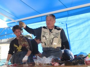 (魚の解体ショーの開催のねらいは、いのちを感謝していただくことです。